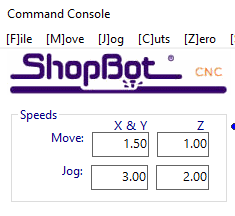 If the ShopBot control software crashes while cutting the Move and Jog speeds “that were in use during the cut, can be left active in the console upon restarting”.